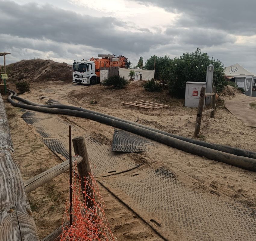 Durante la ejecución de los trabajos, los denunciantes afirman haber observado movimientos de arena y eliminación de vegetación psammófila, compactación del sustrato y alteración de la morfología del sistema dunar debido al tránsito de maquinaria. También señalan la presencia no autorizada de vehículos pesados en un área considerada sensible y la ausencia de señalización ambiental o medidas de restauración. Asimismo, apuntan al depósito permanente de materiales de obra en la zona.