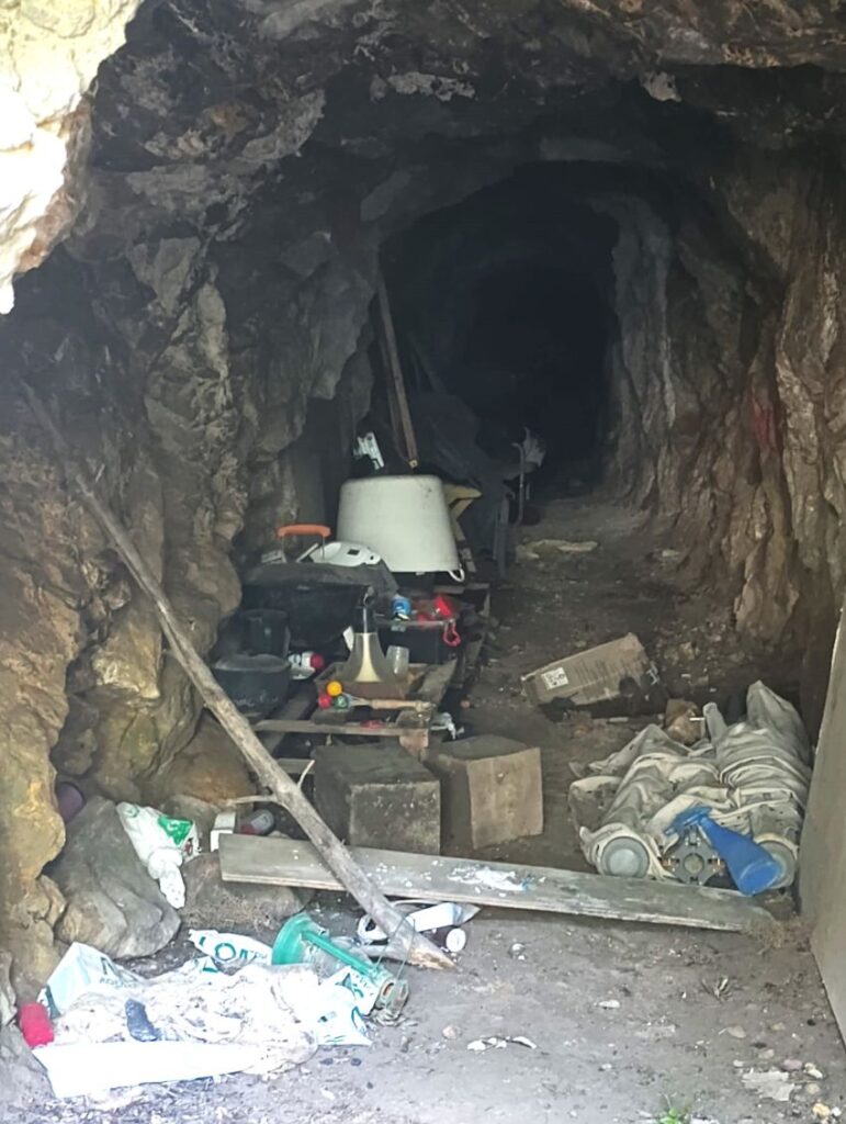 La mina de La Campana es un punto negro en plena Sierra Blanca. Un okupa ha llenado de objetos, muebles y basura esta mina del siglo XIX desde hace años ante la inacción de las administraciones públicas.