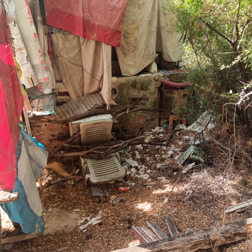 Es un atentado medioambiental en el corazón de Sierra Blanca. En el valle de Puerto Rico, muy cerca del restaurante Cascada, un okupa autodenominado como marqués de Guaro se apropió hace casi 20 años de las instalaciones de la antigua traída de agua a Marbella, se edificó una casucha, construyó otra casa de obra con varias habitaciones junto a una pared de la montaña y llenó durante años todo el entorno de basura.