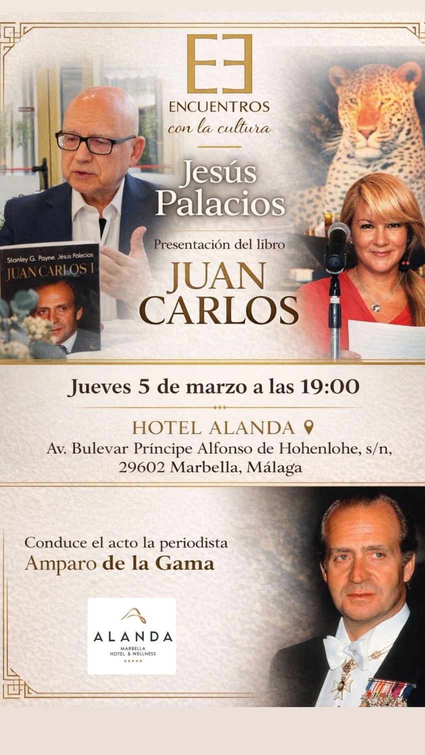 El periodista e historiador Jesús Palacios, coautor junto a Stanley Payne de el Rey Juan Carlos, Juan Carlos I, editada por Esfera de los Libros, llega el foro de encuentros con la cultura el próximo jueves 5 de marzo a las 19 00 en el Hotel Alanda, desgranando aspectos desconocidos del Rey emérito, desde su turbulenta infancia hasta su papel en el 23-F.